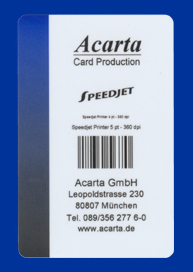 | Speedjet ist eine neue UV-Technologie zur Personalisierung von Plastikkarten. Optimal geeignet für Großauflagen bei 1-farbigem Druck: |